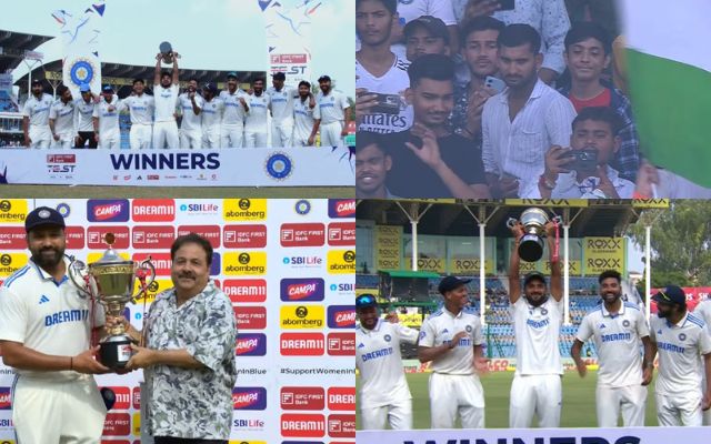 टेस्ट क्रिकेट में Team India ने फिर से जीत की कहानी लिख दी है, जहां रोहित की सेना ने इस बार रेड बॉल क्रिकेट में दो मैचों की सीरीज में बांग्लादेश टीम को मात दी है। वहीं इस जीत के बाद टीम के हर खिलाड़ी के चेहरे पर मुस्कान थी, तो कप्तान रोहित ने भी ट्रॉफी टीम के नए खिलाड़ी के हाथ में थमा दी थी और अब इसका वीडियो वायरल हो रहा है।
