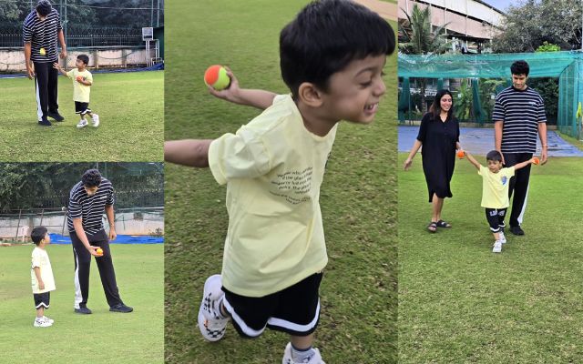 *NCA के मैदान की हैं तस्वीरें, इस दौरान दुबे बेटे के साथ क्रिकेट बॉल से खेल रहे थे ।