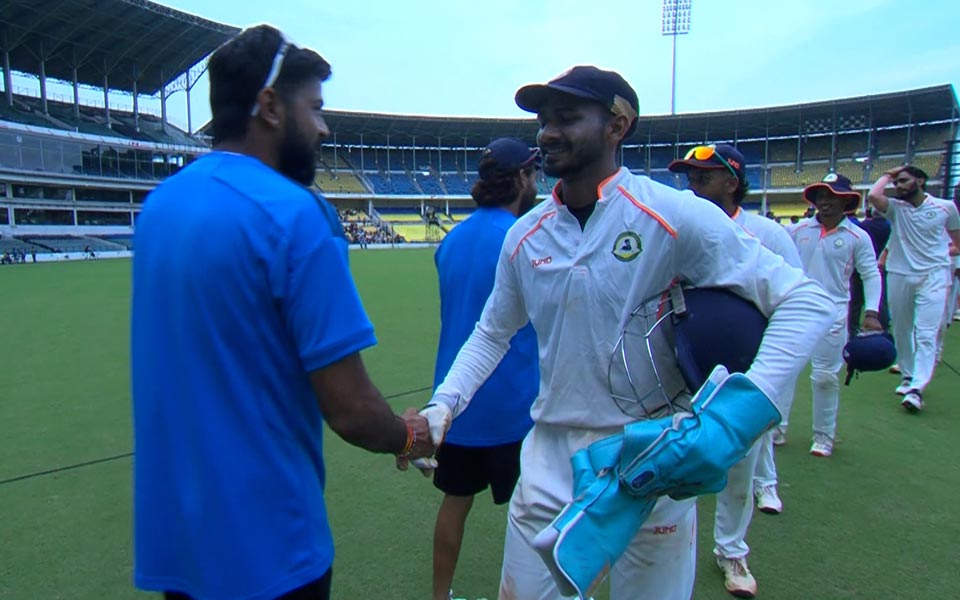 Harsh Dubey was the pick of the bowlers for Vidarbha. He picked up four wickets, giving away just 73 runs in 27.5 overs. Thakare and Yash Thakur chipped in with two wickets apiece. Meanwhile, Parth Rekhade and Nalkande took one wicket each.