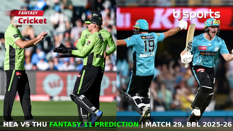 HEA vs THU Dream11 Prediction, Match 29, Big Bash League Fantasy Cricket Tips, Playing XI, Pitch Report & Injury Updates