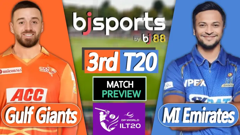 Giants बनाम MI Emirates मैच प्रेडिक्शन – तीसरा T20 इंटरनेशनल लीग T20 2025-26 एक रोमांचक मुकाबले के साथ जारी है, जिसमें गल्फ जायंट्स (GG) का मुकाबला MI एमिरेट्स (MIE) से...
