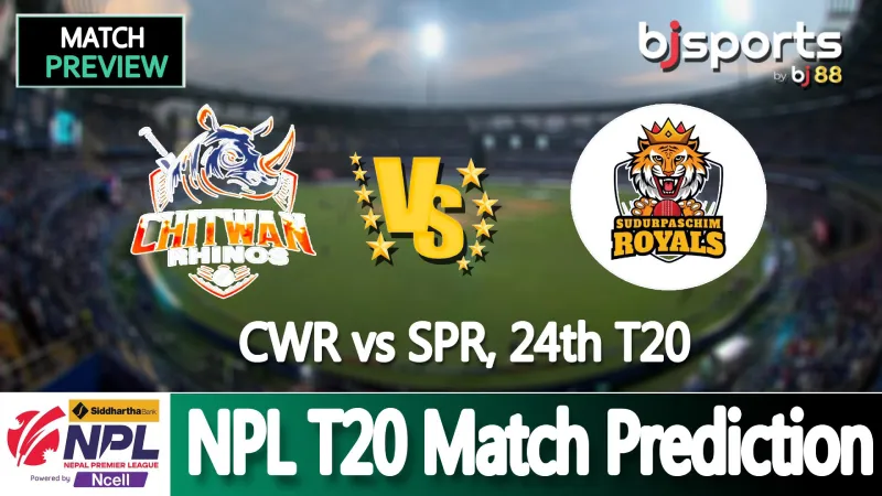 Chitwan Rhinos बनाम SudurPaschim Royals मैच प्रेडिक्शन | 24वां T20 Nepal Premier League 2025 में बुधवार, 3 दिसंबर, 2025 को शाम 4:00 PM LOCAL पर त्रिभुवन यूनिवर्सिटी इंटरनेशनल क्रिकेट ग्राउंड,...