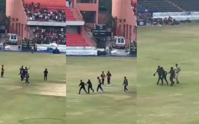 SMAT 2025: Hardik Pandya (image via X) 2 दिसंबर को बड़ौदा और पंजाब के बीच 2025 सैयद मुश्ताक अली ट्रॉफी मैच के दौरान एक दर्शक खेल के मैदान में दौड़ा...