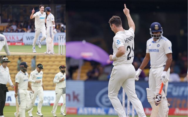 भारत और न्यूजीलैंड के बीच बेंगलुरु के एम चिन्नास्वामी स्टेडियम में तीन मैचों की सीरीज का पहला मैच खेला जा रहा है। मैच में टीम इंडिया की शुरुआत बेहद खराब रही और टीम ने तीन विकेट जल्दी गंवा दिए। रोहित शर्मा जहां दो रन बनाकर आउट हुए, तो वहीं विराट कोहली और सरफराज खान तो अपना खाता भी नहीं खोल सके। सरफराज को मैट हैनरी ने पवेलियन भेजा, जिनका डेवोन कॉनवे ने बेहतरीन कैच लिया। कॉनवे के इस कैच को देखकर पूरी कीवी टीम के साथ-साथ फैंस भी हैरान रह गए।