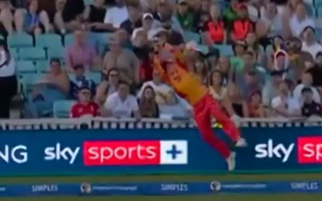 जब गेंद बाउंड्री के पार जाने वाली थी, तो वह बाउंड्री रोप के तरफ भागे और अपने दाहिने ओर ऊंची छलांग लगाई। किसी तरह, वह हवा में ही दोनों हाथों से गेंद को कैच करने में कामयाब रहे, लेकिन फिर वह जमीन पर गिर गए।