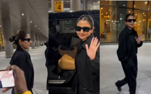 *एयरपोर्ट पर काले रंग के आउटफिट में दिखी अनुष्का, मीडियो को किया हैलो।