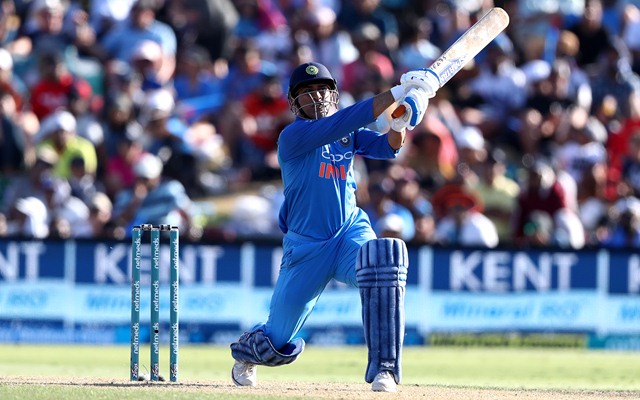 MOUNT MAUNGANUI, NEW ZEALAND – JANUARY 26: MS Dhoni of India bats during game two of the One Day International Series between New Zealand and India at Bay Oval on January 26, 2019 in Mount Maunganui, New Zealand. (Photo by Hannah Peters/Getty Images)