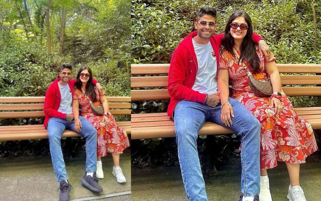 *बल्लेबाज Suryakumar Yadav ने वाइफ के साथ अपनी एक तस्वीर की है शेयर।