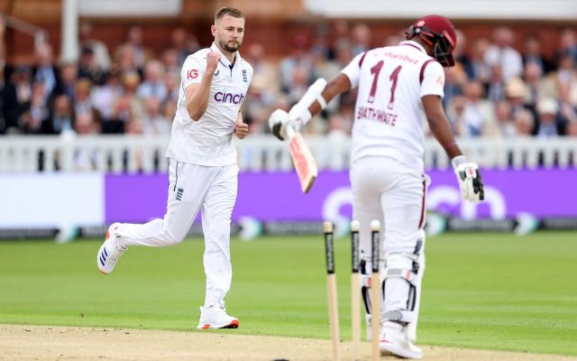 इंग्लैंड के तेज गेंदबाज गस एटकिंसन ने अपने टेस्ट करियर की शानदार शुरुआत की। उन्होंने वेस्टइंडीज के कप्तान क्रैग ब्रैथवेट (6 रन) को आउट करने के लिए ऐसी शानदार गेंद फेंकी जिससे उनकी पारी समाप्त हुई और टीम को मैच में बढ़त बनाने का मौका मिला।