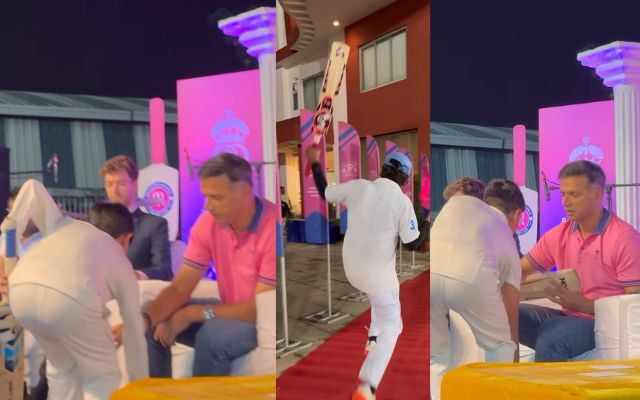 Rahul Dravid अब Rajasthan Royals टीम के हेड कोच बन गए हैं, ऐसे में टीम ने उनके अंडर अपने प्रमुख खिलाड़ियों को भी रिटेन कर लिया है। वहीं अब द्रविड़ RR टीम के इवेंट में नजर आने लगे हैं, इसी कड़ी में जयपुर से टीम के हेड कोच का एक वीडियो सामने आया है और ये वीडियो देख आपका दिन बन जाएगा।
