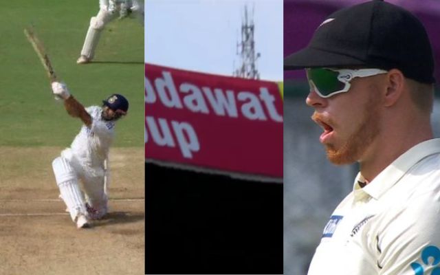 भारत की दूसरी पारी का 87वां ओवर टिम साउदी ने डाला था। ओवर की पहली गेंद पर ऋषभ पंत ने शानदार चौका लगाया था। दूसरी गेंद पर कोई रन नहीं आया, फिर तीसरी गेंद पर उन्होंने 107 मीटर लंबा करारा छक्का लगाया। ऋषभ पंत एक घुटने के बल पर बैठे और स्लॉग-स्वीप शॉट खेलते हुए, स्क्वायर लेग के ऊपर से छक्का लगाया। ऋषभ पंत का छक्का देख फील्ड पर तैनात ग्लेन फिलिप्स का मुंह खुला का खुला रह गया। वहीं, नॉन-स्ट्राइकर एंड पर खड़े केएल राहुल के चेहरे पर भी बड़ी सी मुस्कान थी।