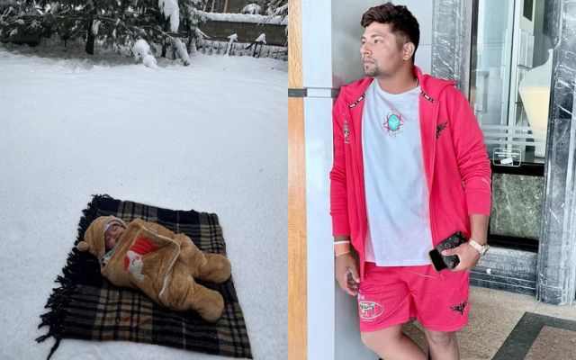 *साथ ही इस तस्वीर में बल्लेबाज का बेटा जहां लेटा है, वहां बर्फ ही बर्फ है।