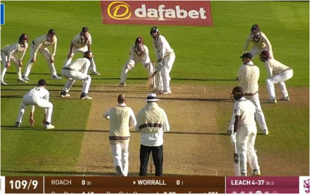 मैच के कुछ ही मिनट बचे थे और Somerset को जीत के लिए सिर्फ एक विकेट की जरूरत थी। गेंदबाज जैक लीच ने फिर सर्रे के आखिरी बल्लेबाज डेनियल वॉरेल पर दबाव बनाने के लिए सभी 10 खिलाड़ियों को विकेट के पास बुला लिया। सभी 10 फील्डर्स कैच लपकने के लिए तैयार थे।