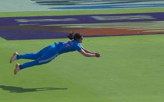 आज के मैच में डेब्यू कर रही प्रिया मिश्रा द्वारा फेंके गए इस ओवर की तीसरी गेंद पर, स्ट्राइक पर मौजूद ब्रूक हालीडे (8) लाॅन्ग ऑफ की ओर एक शाॅट खेलना चाहती थीं, लेकिन गेंद हवा में चली गई। इस दौरान मिड ऑफ की ओर फील्ड कर रही राधा यादव तेजी से दौड़ते और हवा में रहते हुए एक बेहतरीन कैच लपकती है। जैसे ही राधा ने ये कैच लपका, तो इस कैच की वीडियो काफी तेजी से सोशल मीडिया पर वायरल हो गई।