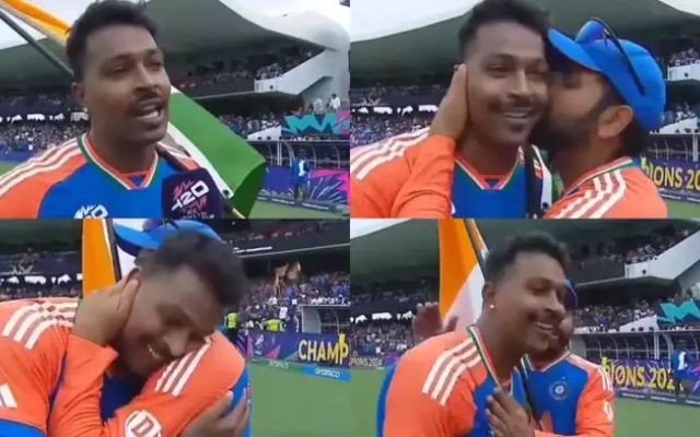 टी-20 वर्ल्ड कप 2024 जीतने के बाद टीम इंडिया सहित पूरे देश में जश्न का माहौल था। भारत की टीम ने 11 साल बाद जैसे ही खिताब अपने नाम किया तो कप्तान रोहित शर्मा भी खुशी से झूम उठे। इस ऐतिहासिक जीत के बाद रोहित शर्मा की आंखें नम थी। मैच के तुरंत बाद जब हार्दिक पांड्या इंटरव्यू दे रहे थे तभी बीच इंटरव्यू रोहित शर्मा वहां पहुंचे और जीत के हीरो पांड्या को किस करते हुए गले से लगा लिया।