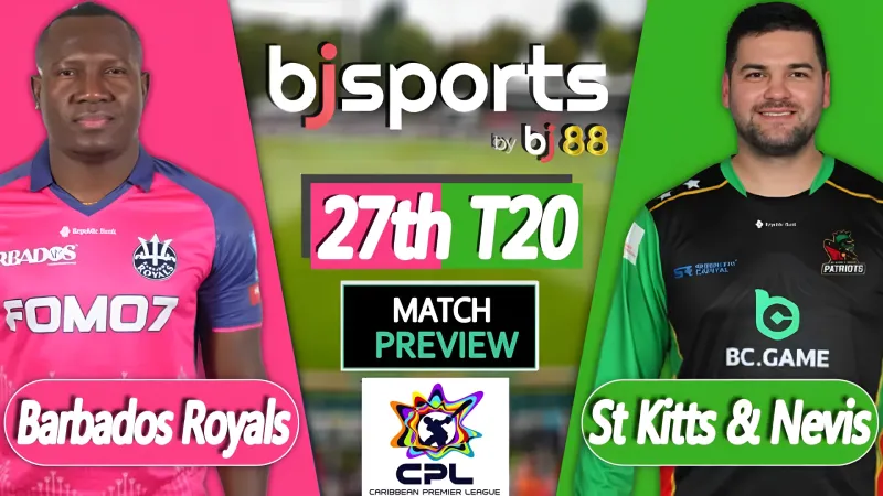 CPL 2025 | सेंट किट्स एंड नेविस पैट्रियट्स बनाम बारबाडोस रॉयल्स 27वां टी20 मैच | मैच पूर्वावलोकन – SKNP बनाम BR | आज कौन जीतेगा?