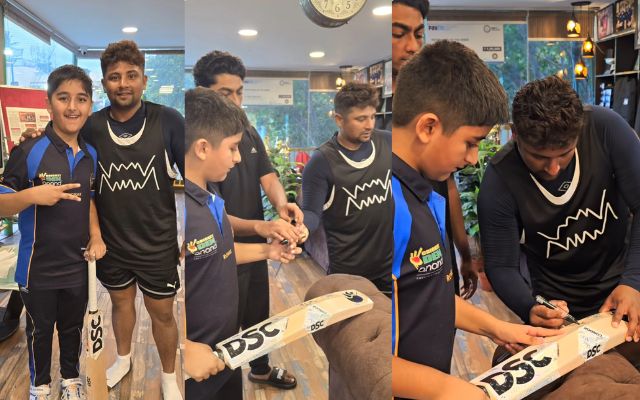 अपने फैन से मिलकर खुश हुए Sarfaraz Khan, बल्ले पर दिया चाहने वाले को खास गिफ्ट