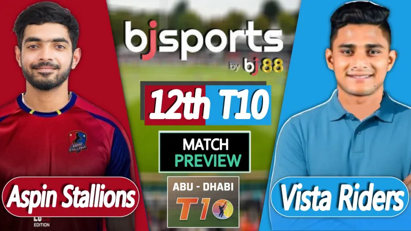 अबू धाबी T10 2025 | ऐस्पिन स्टैलियन्स बनाम विस्टा राइडर्स | 12वां T10 मैच प्रिव्यू – कौन जीतेगा ASP बनाम VIR?