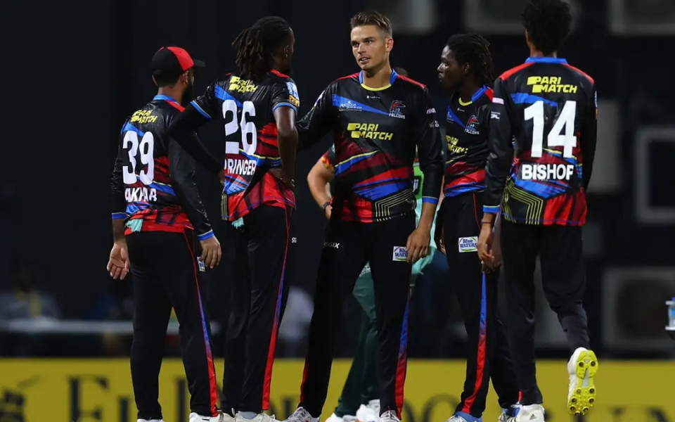 With Imran Tahir and Moeen Ali spinning wickets out and restricting run-scoring, the chase was a nervy one. The Falcons recovered from 24/4 in the power-play as captain Wasim compiled 16 off 24 balls before being run out and Fabian Allen chipped in with 15 off 14 to see the visitors get over the line and secure a much-heralded play-off spot.