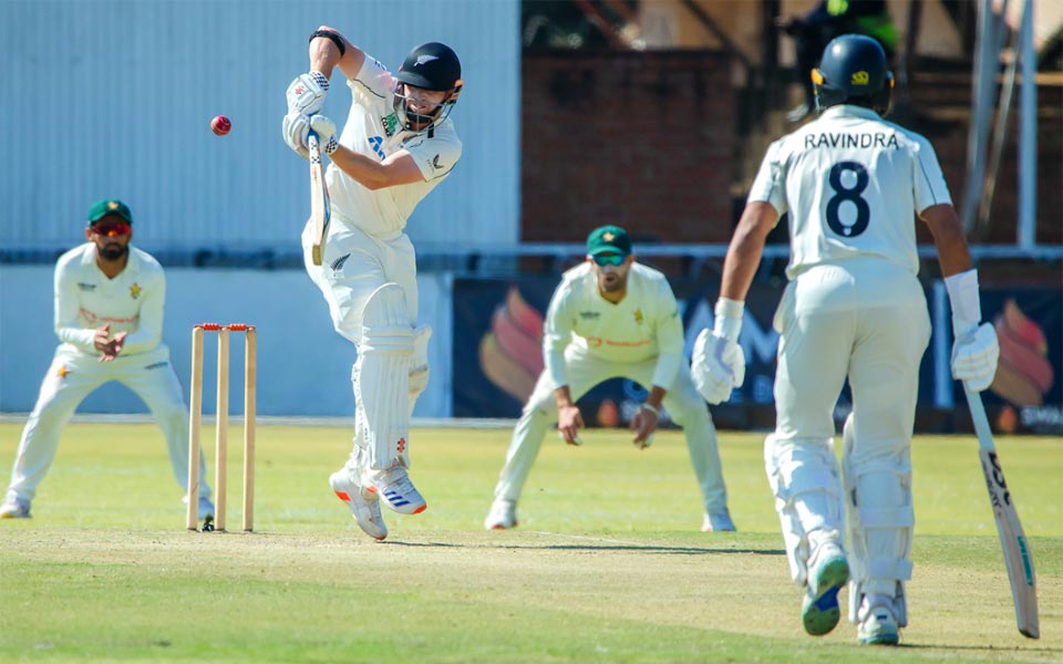Nicholls got to 63, while Conway reached 150 when Zimbabwe took the second new ball. Blessing Muzarabani took the wicket of Conway, who was dismissed for 153 off 245 deliveries, hitting 18 fours. Rachin Ravindra joined forces with Nicholls and took the attack to the Zimbabwean bowlers.