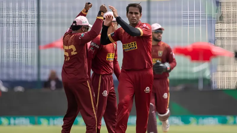 Hasan Nawaz was pivotal, scoring 35* off 36 balls and taking 1/13, anchoring the chase and providing crucial breakthroughs with the ball.