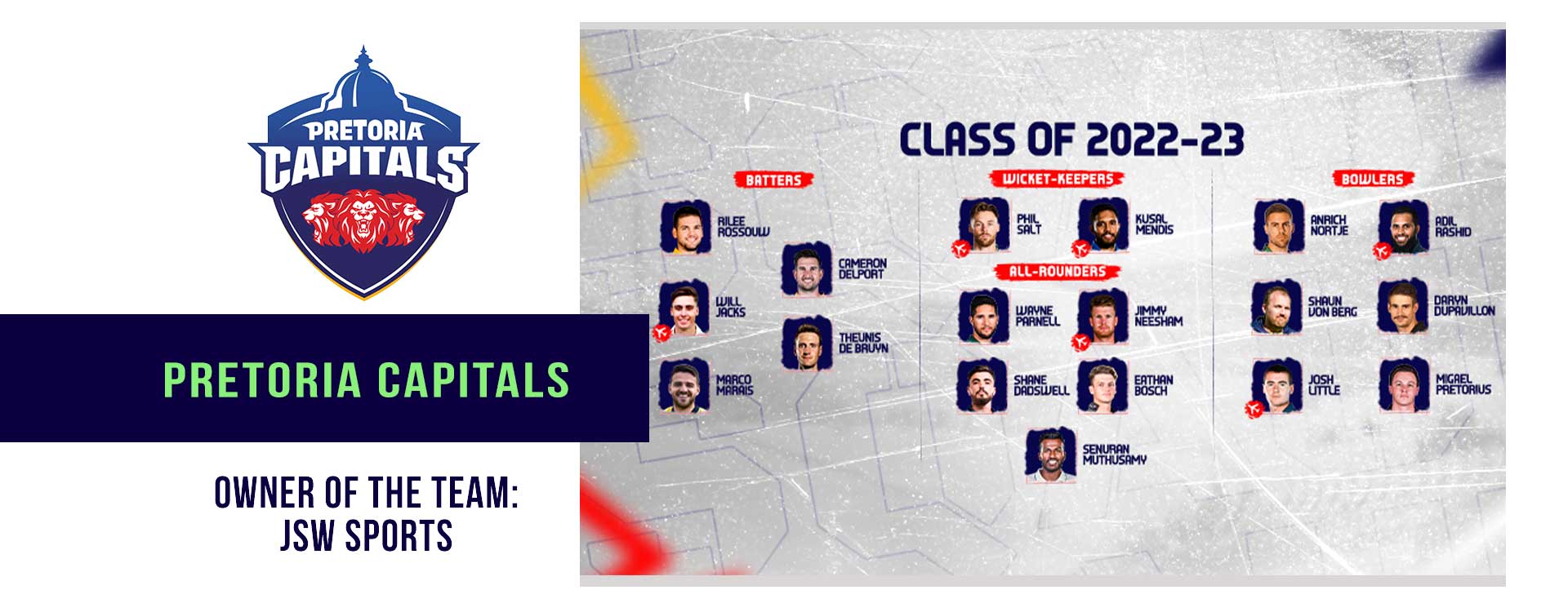 Pretoria's rapid pace is consistent with that of other major cities around the world. On their inaugural trip in the SA20, the Pretoria Capitals hope to bring the same amount of vigor. The team with connections to the Delhi Capitals of the Indian Premier League will play fast, fun, and successful cricket. Another person with connections to Delhi is the tearaway fast bowler Anrich Nortje, who is well-known in the IPL and throughout the world for his lightning-quick pace. Nortje, who was the Capitals' top acquisition before the auction, is joined by Migael Pretorius, a local all-around player with a promising future. He has prior T20 experience from playing for the Jamaica Tallawahs in events of similar kind. He and Nortje are looking forward to mounting a formidable fight for the #SA20 trophy in the early 2023. They can't wait to see who will join them in the Supersport Park dugout.