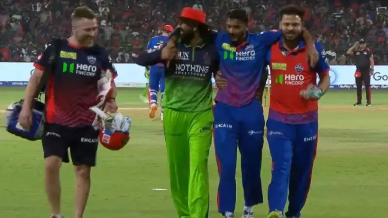 RCB’s Krunal Pandya escorts DC skipper Axar Patel off-field after latter gets retired hurt